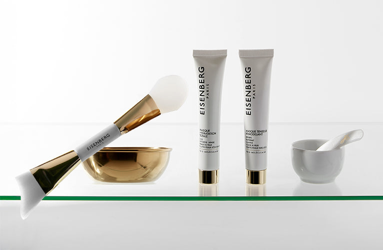 Kit Masques Essentiels: Masque Hydratation Totale 15ml, Masque Tenseur Remodelant 15ml, ainsi qu'un applicateur à double embout pour masques EISENBERG.