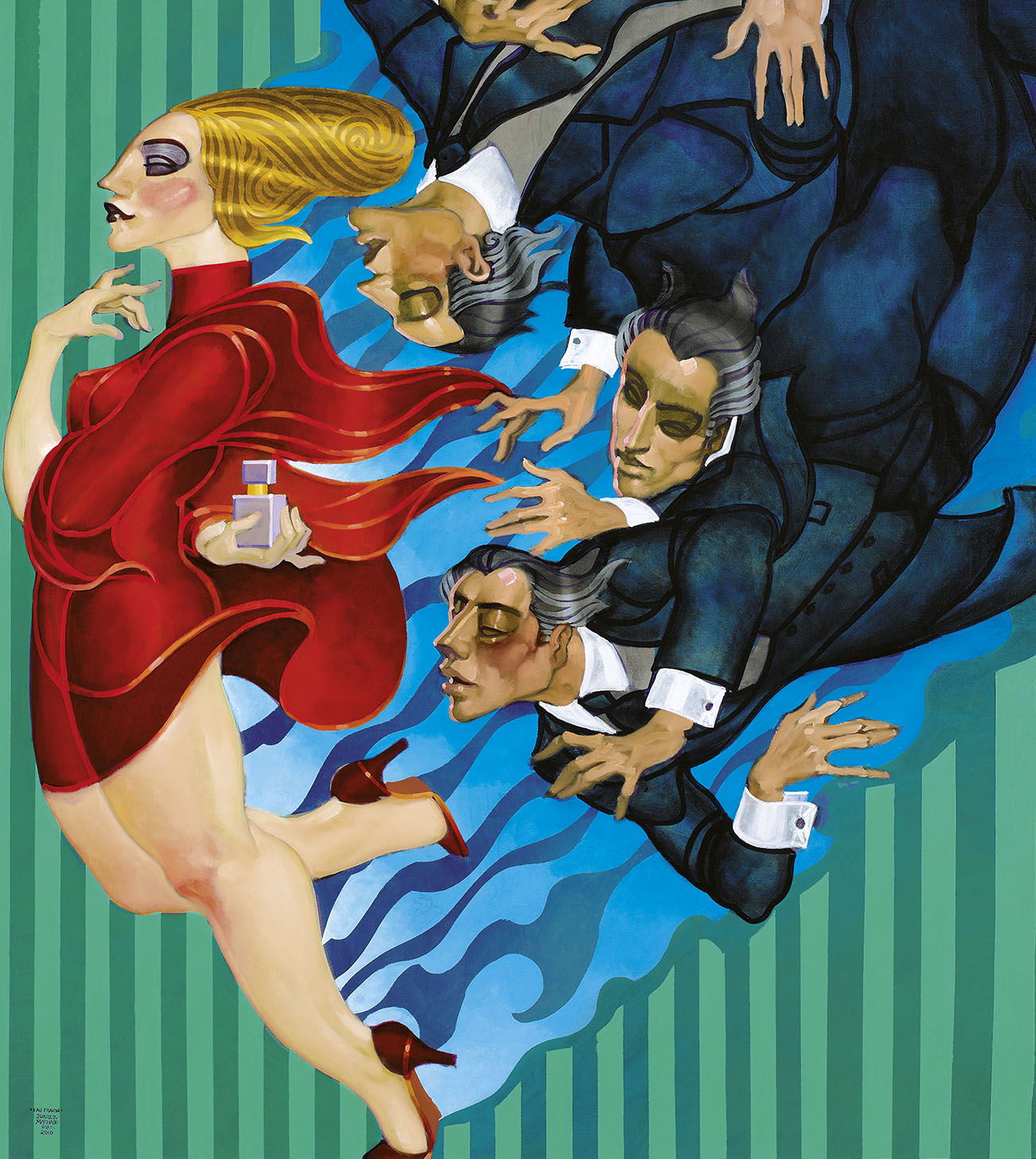 This image has been perfectly captured by Juarez Machado in his painting, through the use of vibrant colors. He portrays a naturally beautiful and independent woman who captivates the attention of all men.