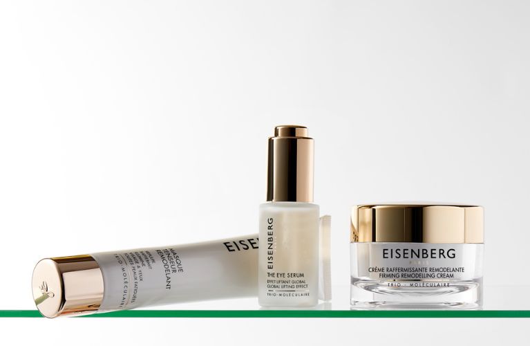 保湿步骤护理商品:Serum Hydratant Lissant 7.5ml、Crème Fluide 7.5ml、Crème Contour des Yeux & Lèvres 5ml 及 EISENBERG 眼部面膜。